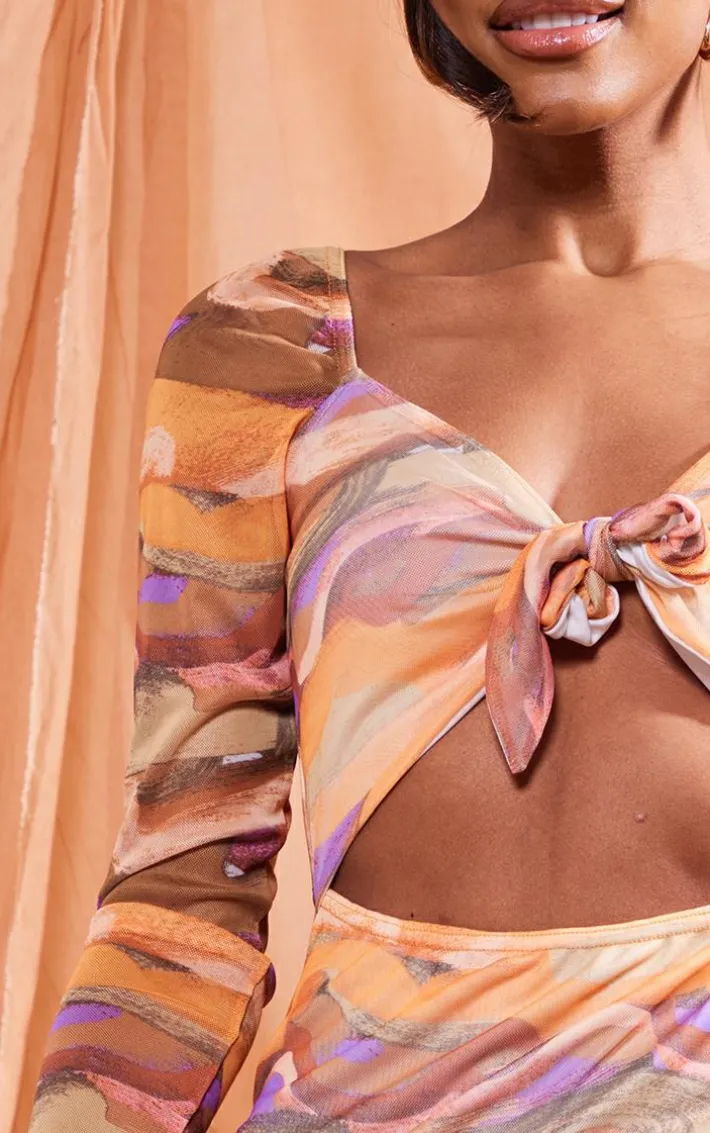 Channel all the luxe vibes into your new season wardrobe with this multi swirl tile print mesh tie front cut out bodycon dress, you’re sure to have heads turning for all the right reasons. It includes a bold multi swirl tile print mesh material with a cut out design and a tie front detail, how could you resist? Wear with strappy heels and gold hoop earrings for a look that is perfect for your next night , it’s a yes from us.