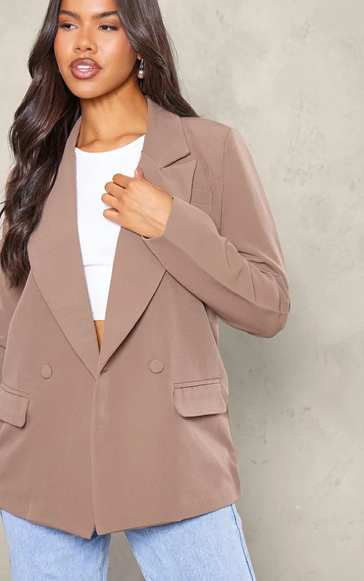 Make a statement this season with this mushroom double breasted oversized boxy fit blazer. This unreal blazer is made from a mushroom hue that is sure to have heads turning. With a double breasted design and an oversized fit, this blazer has all the luxe vibes you just won’t be able to resist. This boxy blazer pairs perfectly with some of your staple jeans, a cute white top and some gold hoops to finish off thus off duty look we are loving.