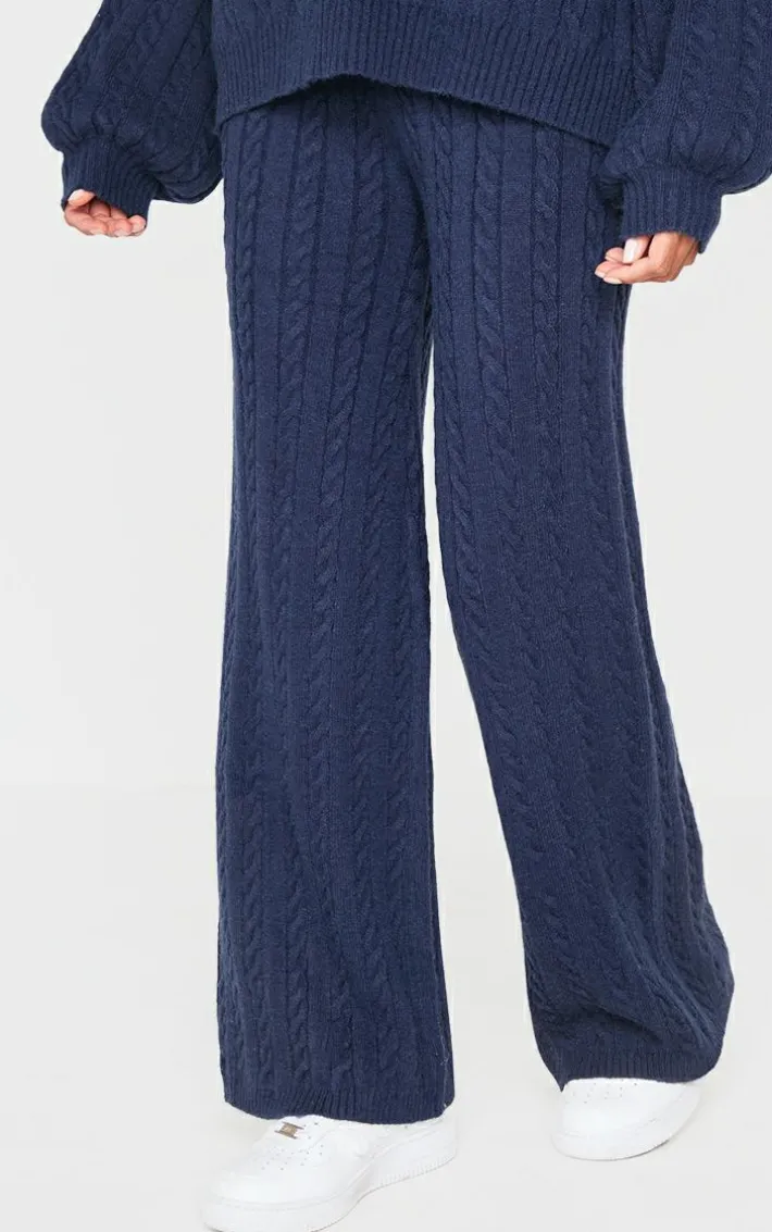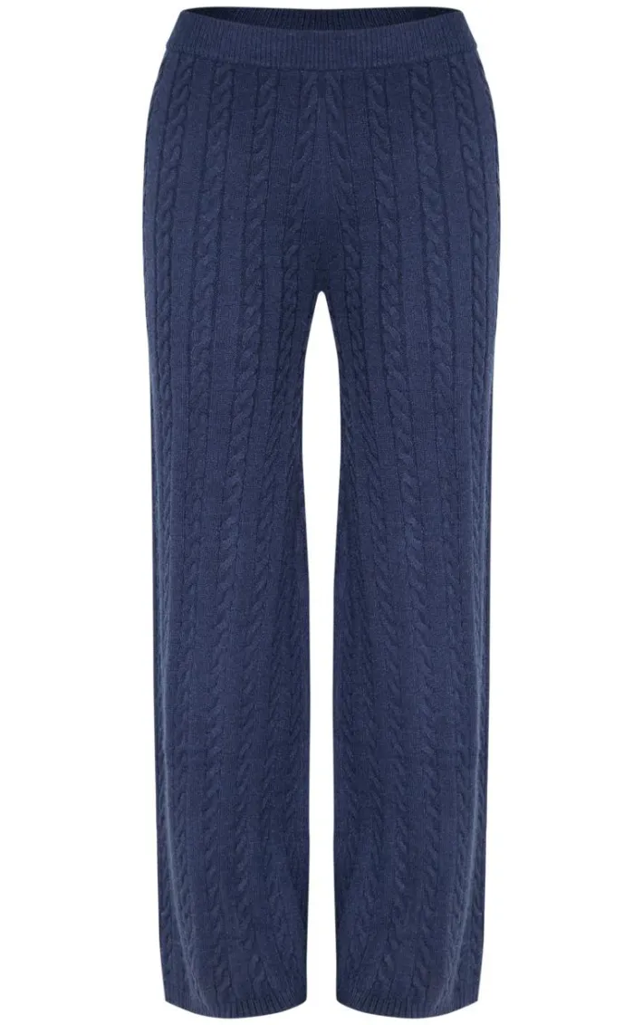 Take on those off-duty days the right way with these navy cable knit wide keg pants. Brought to you in a navy cable knit material with a wide leg design, what more could you want? Team these pants with the matching sweater, a pair of sneakers and a hat of your choice to bring all the edge to your look.
