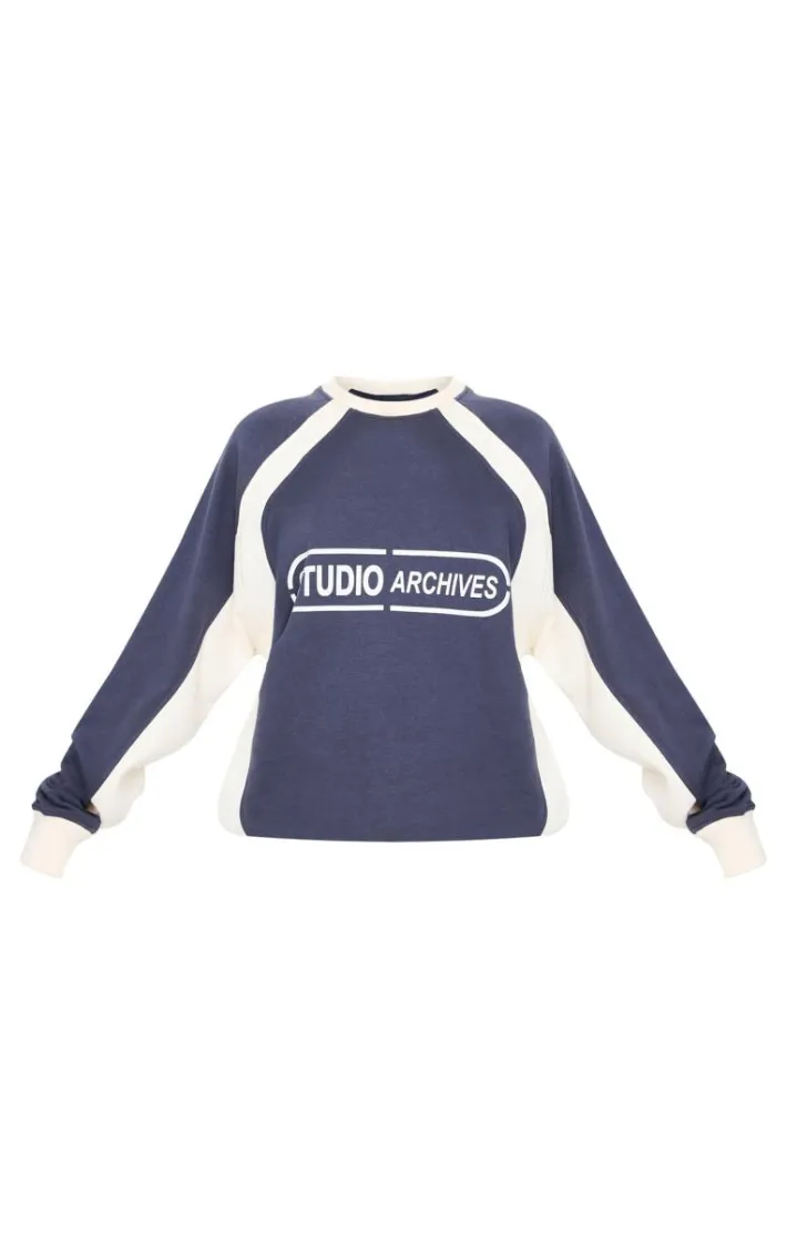 Keep it comfy with this navy contrast panel studio archives sweatshirt. Brought to you in a navy material with a contrast panel design and a ‘Studio Archives’ print, what mire could you want? This sweatshirt is all you need to be on trend. Style with a pair of jeans and some chunky loafers for a look we are loving.