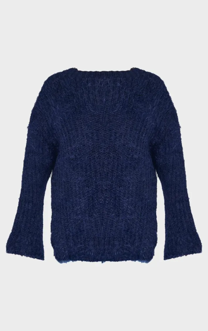 Your new season wardrobe needs this navy eyelash knit super oversized sweater for the colder months ahead. Brought to you in a navy hue eyelash knit material with a super oversized fit, what more could you want? Style this navy sweater with jeans, chunky boots and your go-to accessories for an look that is sure to earn you some serious style points.