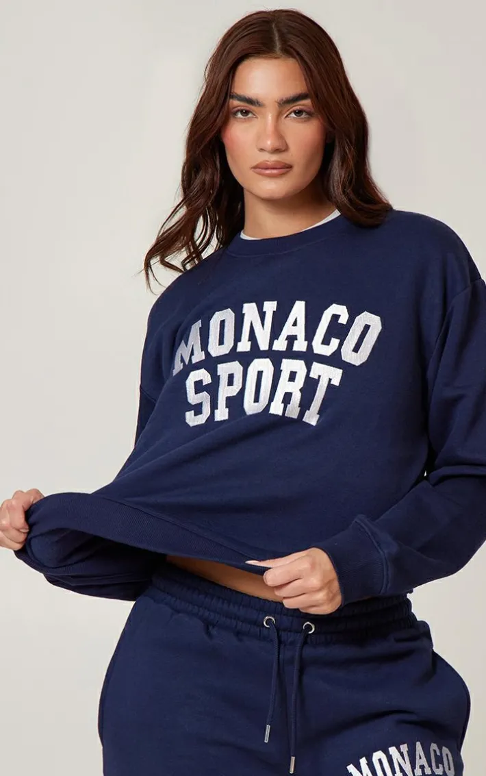 This navy monaco sports embroidered Sweatshirt is a must-have for all of your chill days and beyond. Brought to you in an unreal navy shade, with a luxe ‘monaco sports’ embroidered detail, how can you not love? You won’t have to sacrifice style for comfort with this one. Pair with the matching sweatpants and some fresh sneakers for a look we’re loving.