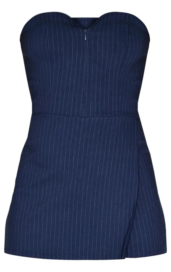 Take a chance on this navy pinstripe woven zip front skort romper. Brought to you in a chic navy hue, with a pinstripe design, luxe woven material and zip front detail, this romper is sure to give a figure-flattering finish. Team with minimal accessories and a pair of boots to complete the look.