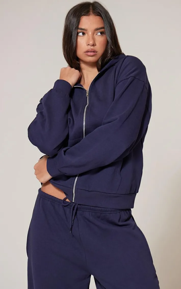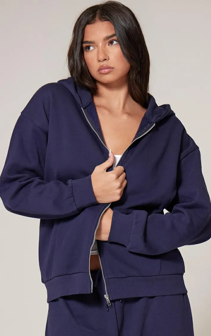 Nothing says cosy vibes quite like an oversized hoodie. With this navy premium zip up oversized hoodie, we know the versatile front zip feature and essential navy fabric will be at the top of your hit list. Take your off-duty look to the next level with the matching sweatpants, and fresh kicks.