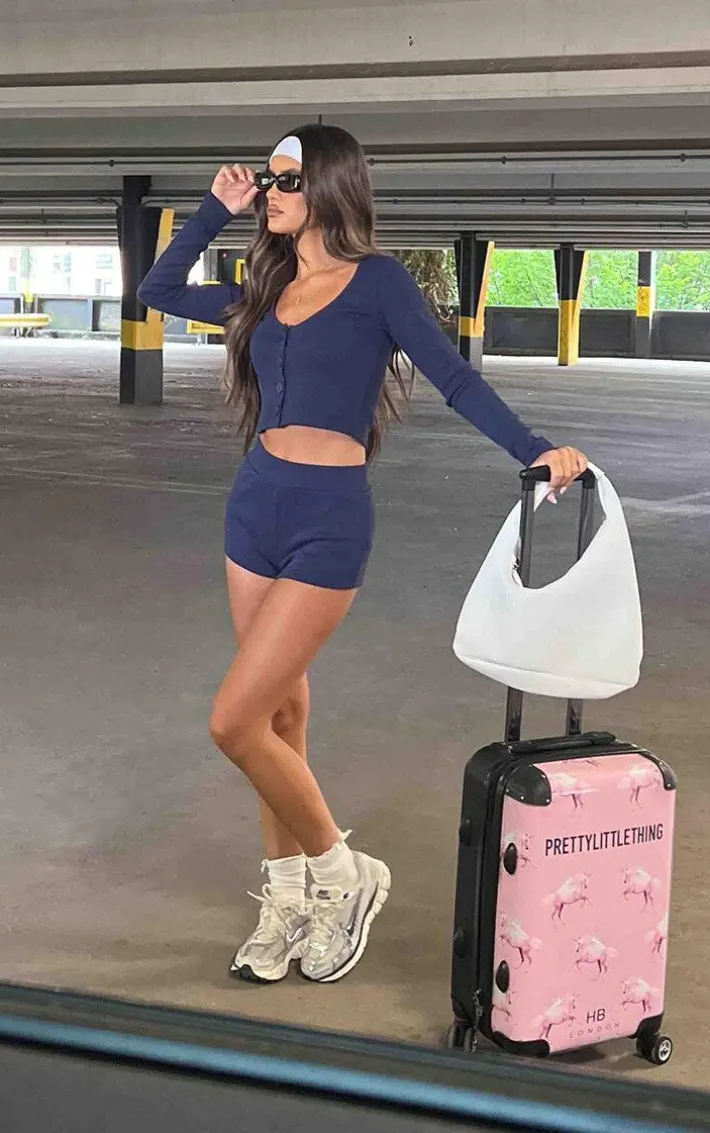 Make sure your off-duty look stays on point in this navy ribbed button front long sleeve top. Brought to you in a navy ribbed material with a button front design, long sleeves and a cropped fit, what’s not to love? Style this navy top with the matching shorts and sneakers for an effortless everyday look like no other.