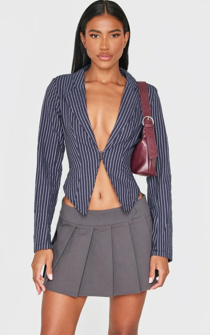 Set trends wherever you step foot with this navy stripe plunge hook and eye shirt. Brought to you in a navy material with a striped design and a hook and eye fastening adding a touch of luxe that will have you feeling confident. This shirt is perfect for those day to night look and beyond. Team with your fave skirt and accessories to finish off the look we are loving.