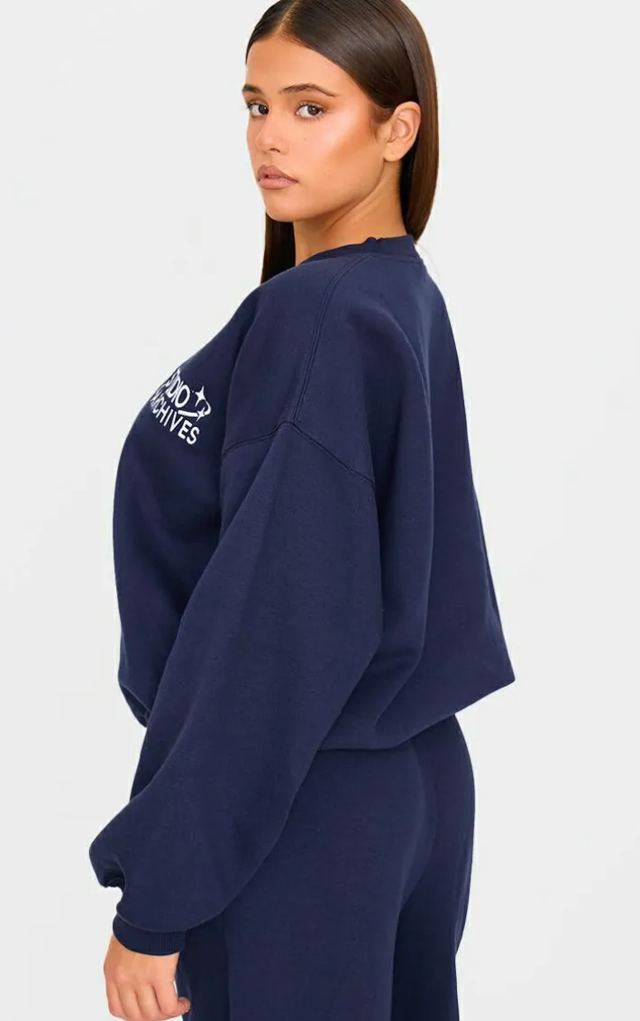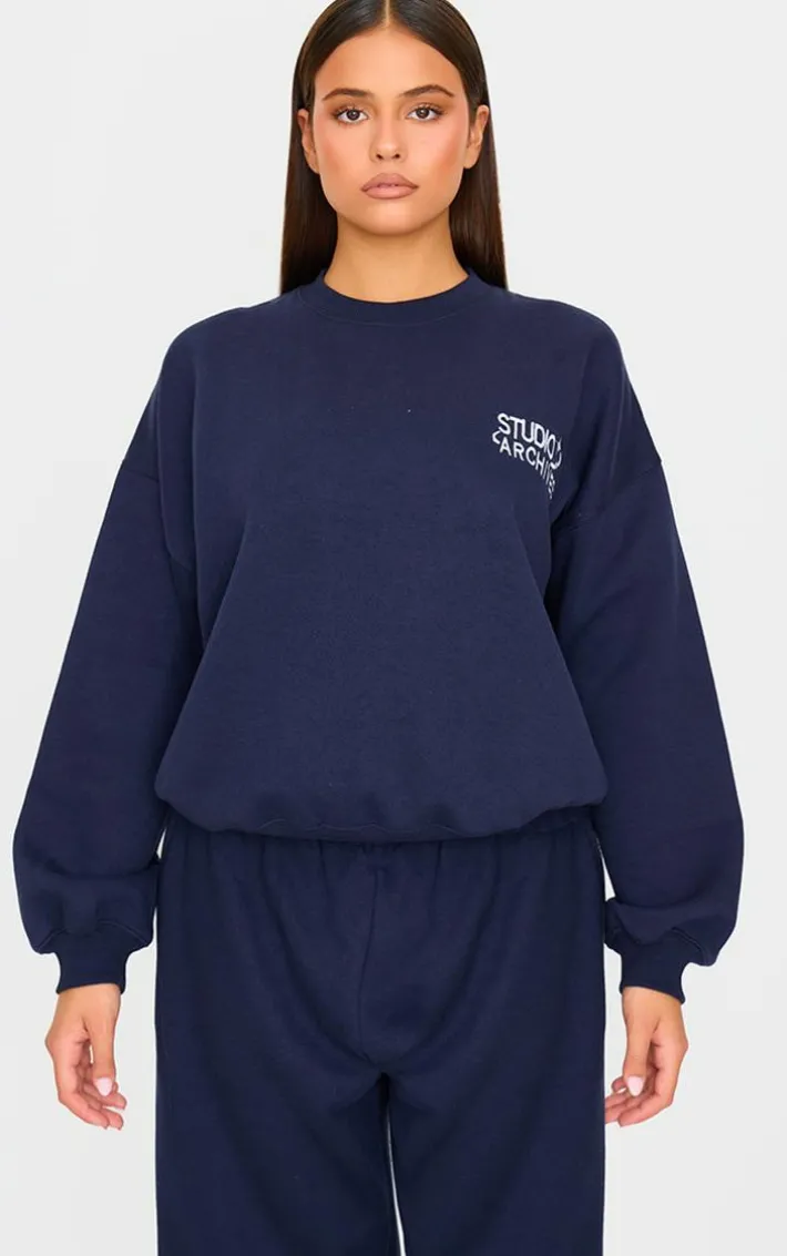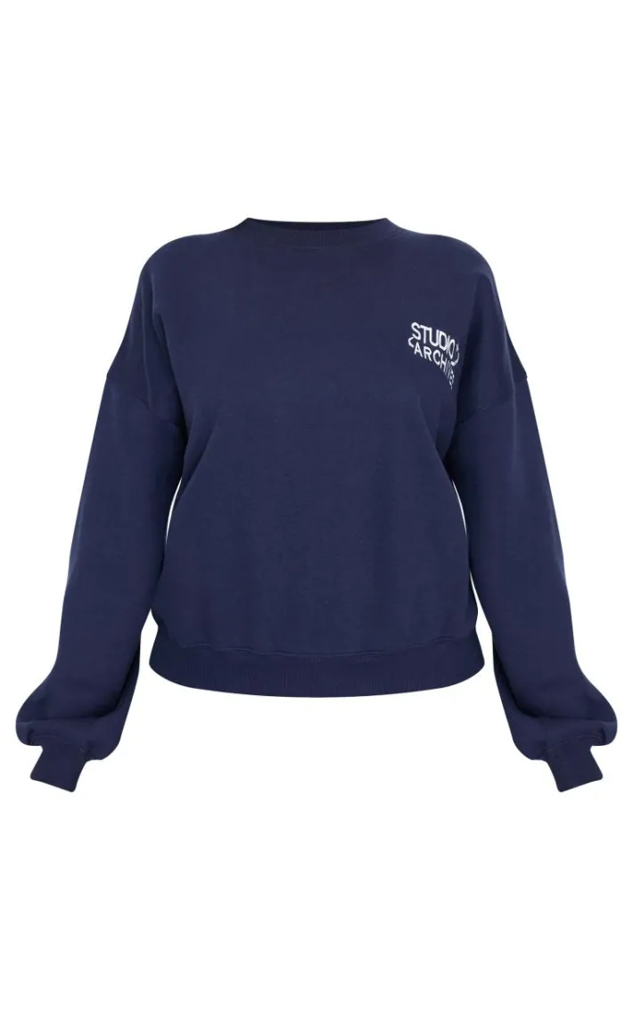 Add this navy studio archives embroidered oversized Sweatshirt to your collection for a look you’ll be reaching for again and again. Brought to you in a neutral navy hue, with a luxe ‘studio archives’ embroidered design and oversized fit, what more could you want? Pair with the matching sweatpants and simple accessories for a staple look we’re loving.