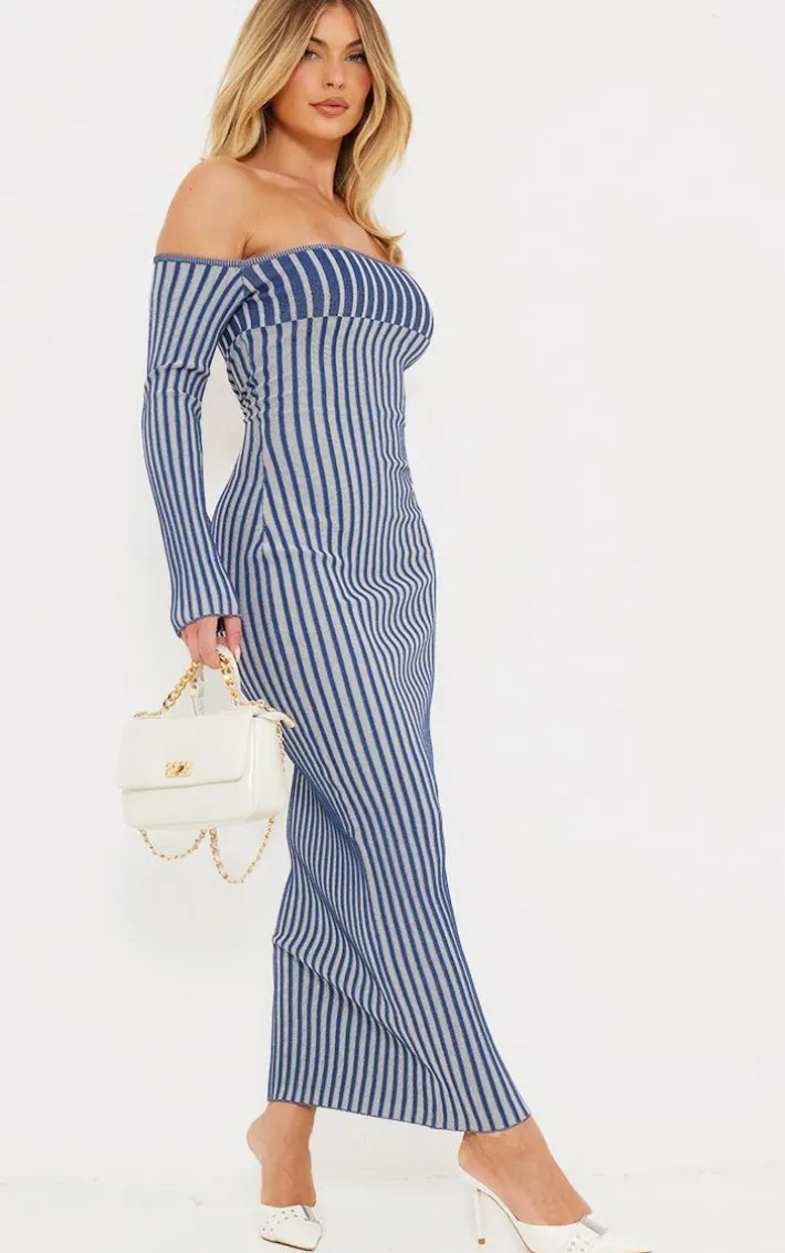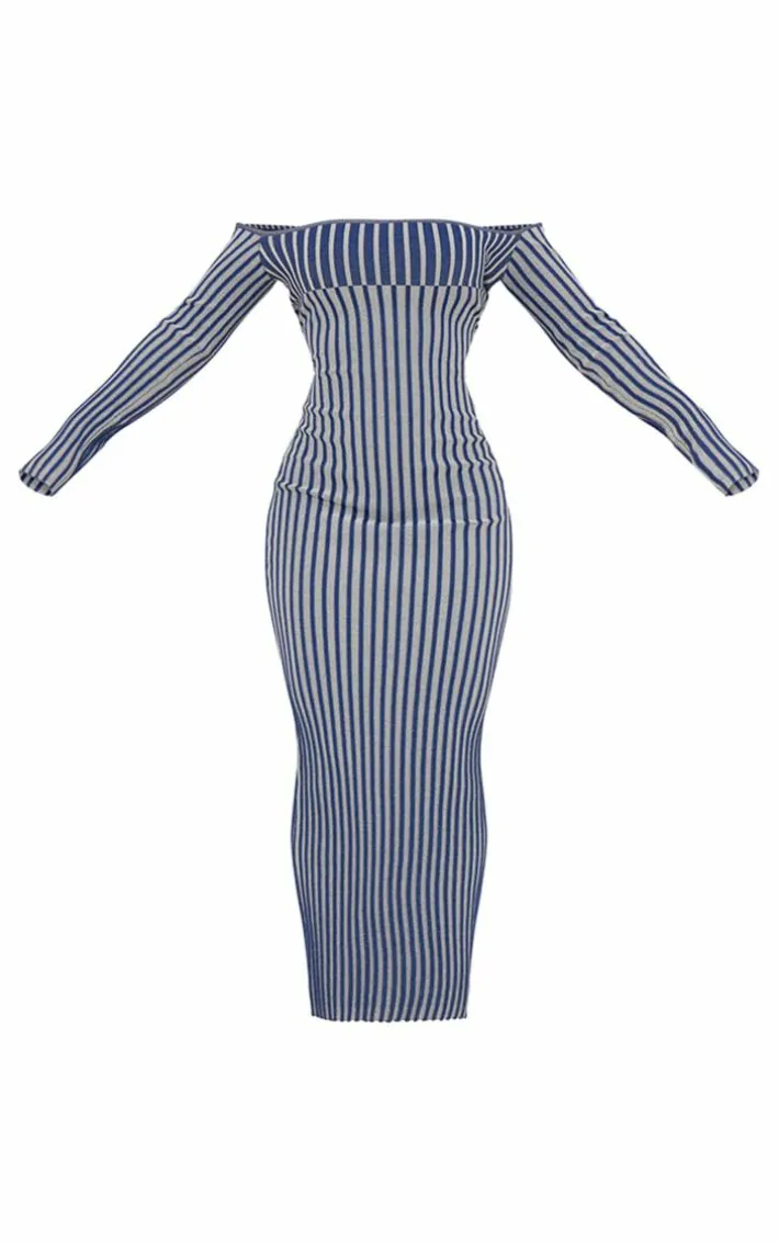 Get ready to have all eyes on you with this navy two tone thick rib knit bardot maxi dress.Brought to you in a navy two tone knit thick rib material with a bardot design, what’snot to love? With it’s figure-hugging fit you’re sure to earn all the likes with this dreamy piece. Finish off the look by pairing this with high heels and your statement accessories. It’s a yes from us.
