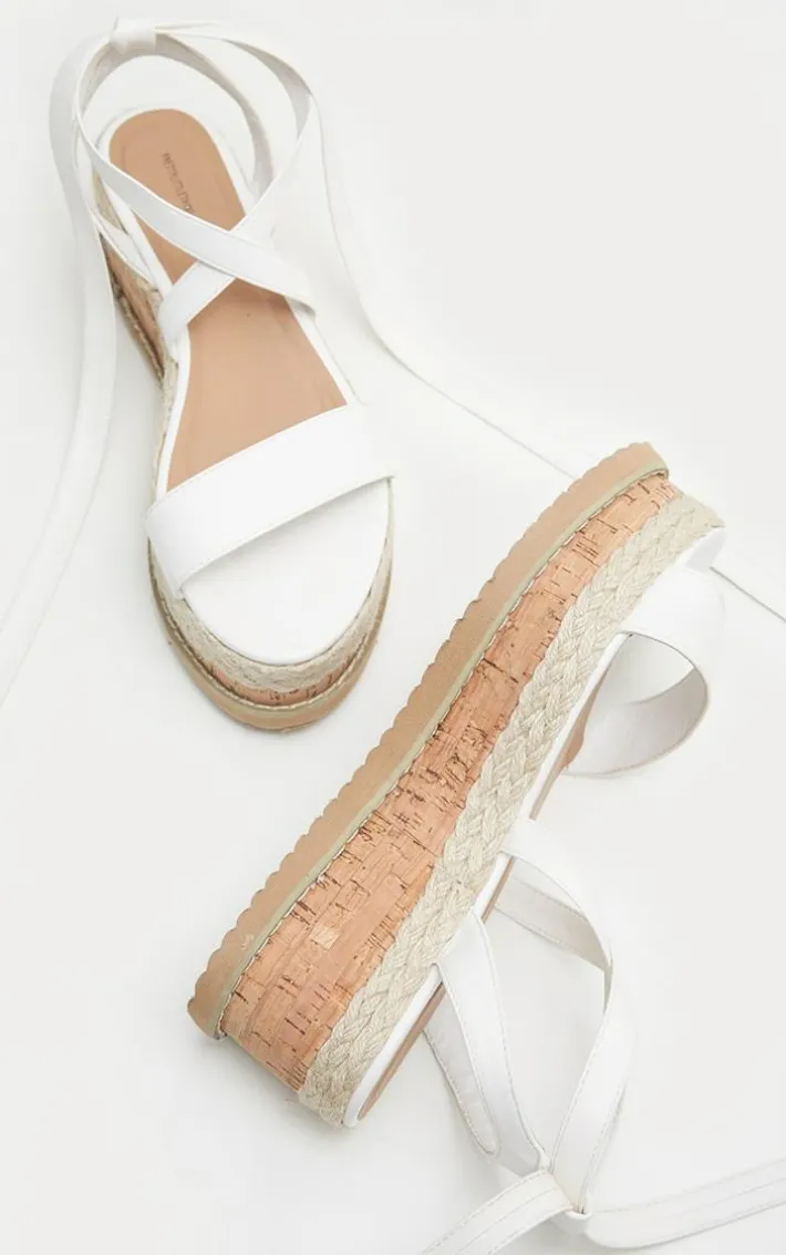 Keep your look fresh and totally on point with white flatforms this season. Featuring a straw sole design and brushed suede panel, these cute flatform espadrilles sandals are essential for your summer