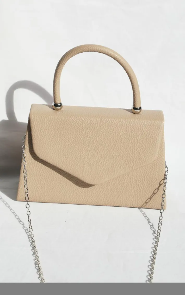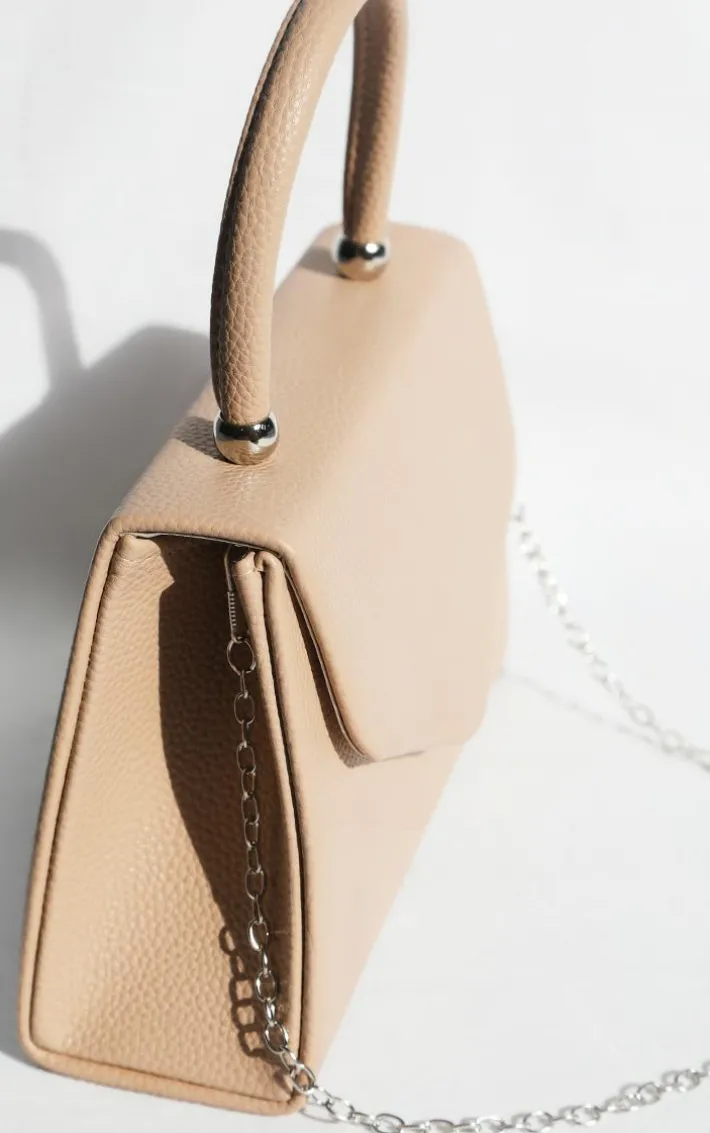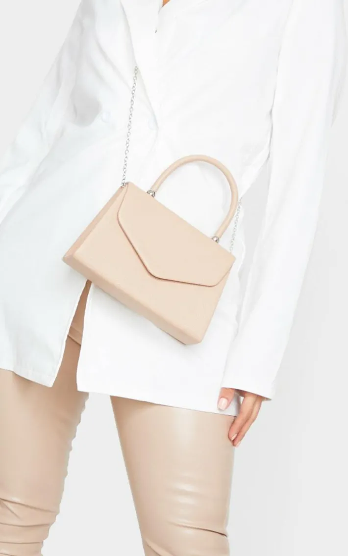 Swap your usual go-to mini bag for this large crossbody bag. Featuring a nude fabric with a top handle, cross-body strap and metal clasp fastening, we are obsessed.