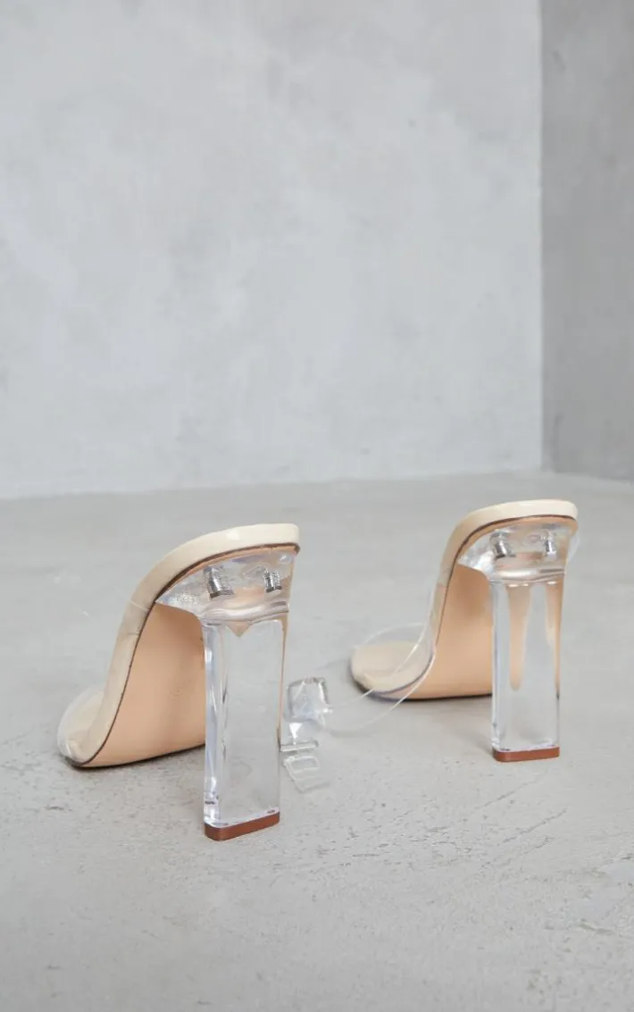 These heels are perfect for drinks. Featuring a nude sole with clear straps and a flat heel, we are totally obsessed.