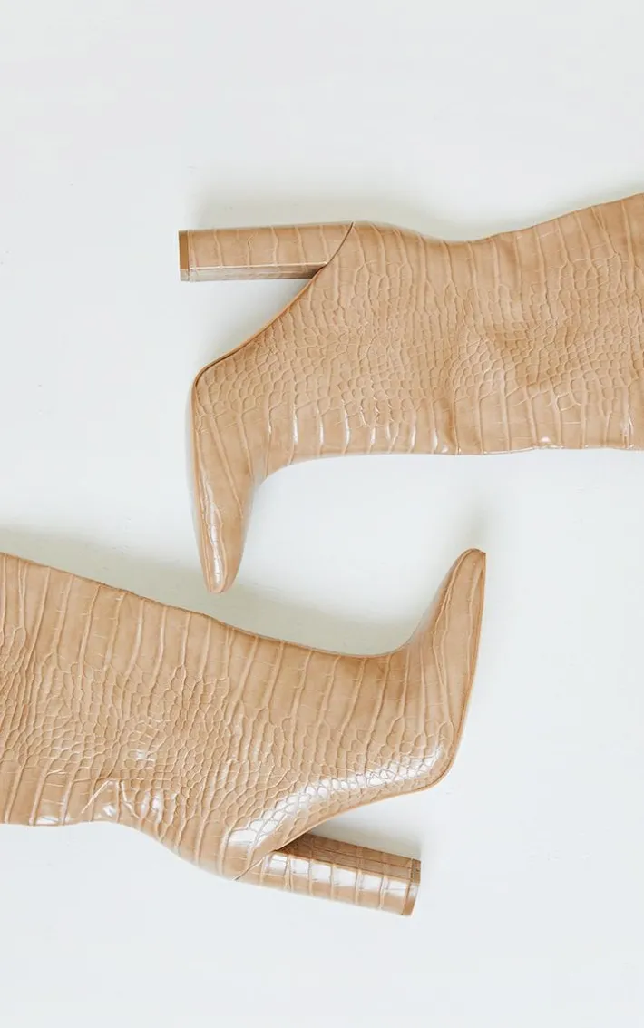 these boots are everything we’re after this season. Featuring a nude material, a knee-high length, and a pointed toe, we’re obsessed.