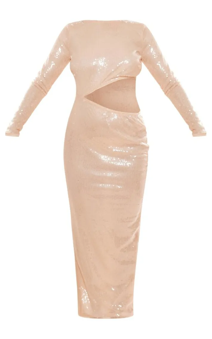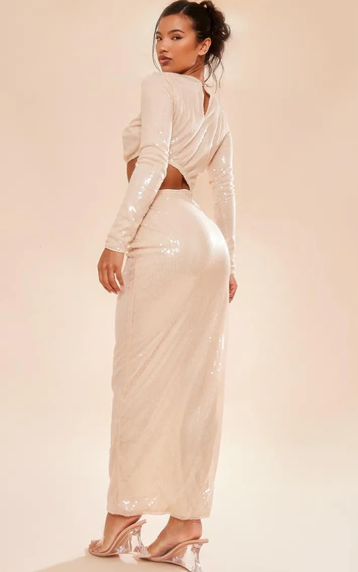 Got a special occasion pencilled into your diary? Well we’ve got you covered with this nude sequin cut out long sleeve maxi dress. This maxi dress is brought to you in a nude sequin material with a cut-out waist, long sleeves and a maxi length, what’s not to love? Complete the look by styling this dreamy dress with your clear high heels and accessories for a vibe that won’t let you down.