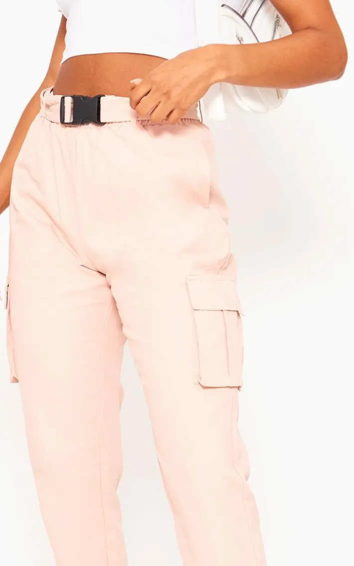 These sweatpants are our new off-duty go-to. Featuring a nude material with a buckle belt and elasticated cuffs, team them with a simple white crop top and chunky sneakers for an off-duty outfit we’re loving.
