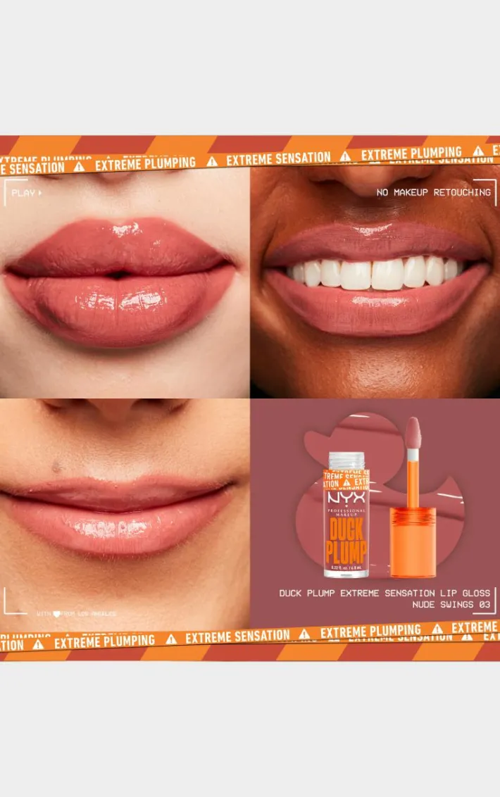 CAUTION! CAUTION! May cause duck lips! Get instant and overtime plumping for the ultimate injectionless pout with duck plump extreme sensation plumping gloss! Feel the extreme plumping sensation powered by spicy ginger. Giving you 2 transparent shades and 16 high pigment shades to play from! Maximum intense color with minimum effort! Vegan formula. Pro performance.