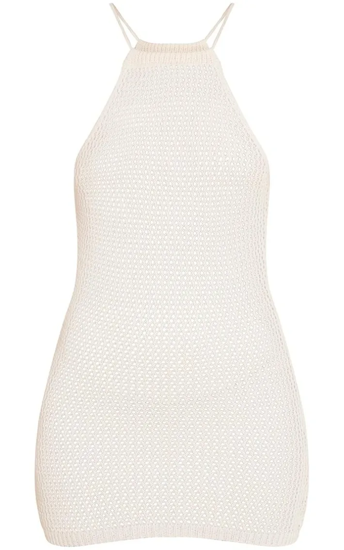 Steal all the stares in this must-have mini dress, Featuring an oatmeal crochet material with a tie strap and a mini length, we are obsessed. Style with slides and gold accessories for a day out.