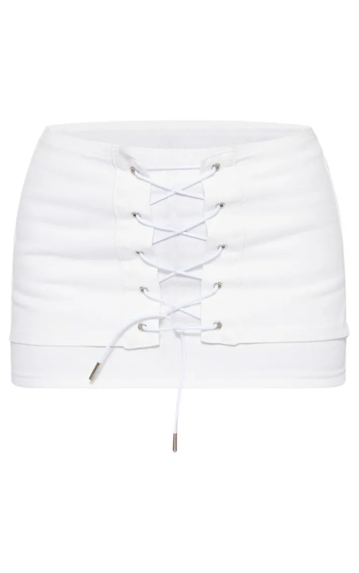When the weekend calls for a little drama this off white lace front denim mini skirt is sure to be at the top of your hit list. It is made using an off white denim material with a lace front design and a mini length, how could you say no? Pair this mini skirt with the matching top, knee high heeled boots and your fave accessories for a look that will have you at the center of attention.