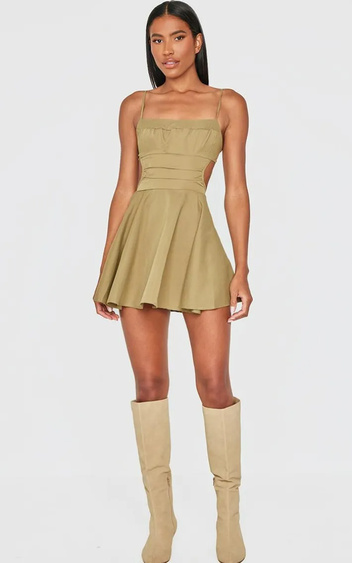 Enter the new season in style with this olive cut out tie back shift dress. Brought to you in an olive hue material with a cut out design, tie back detailing and a shift style, how can you say no? Style this shift dress with sandals and statement gold accessories for an effortlessly chic look that will steal all the stares.