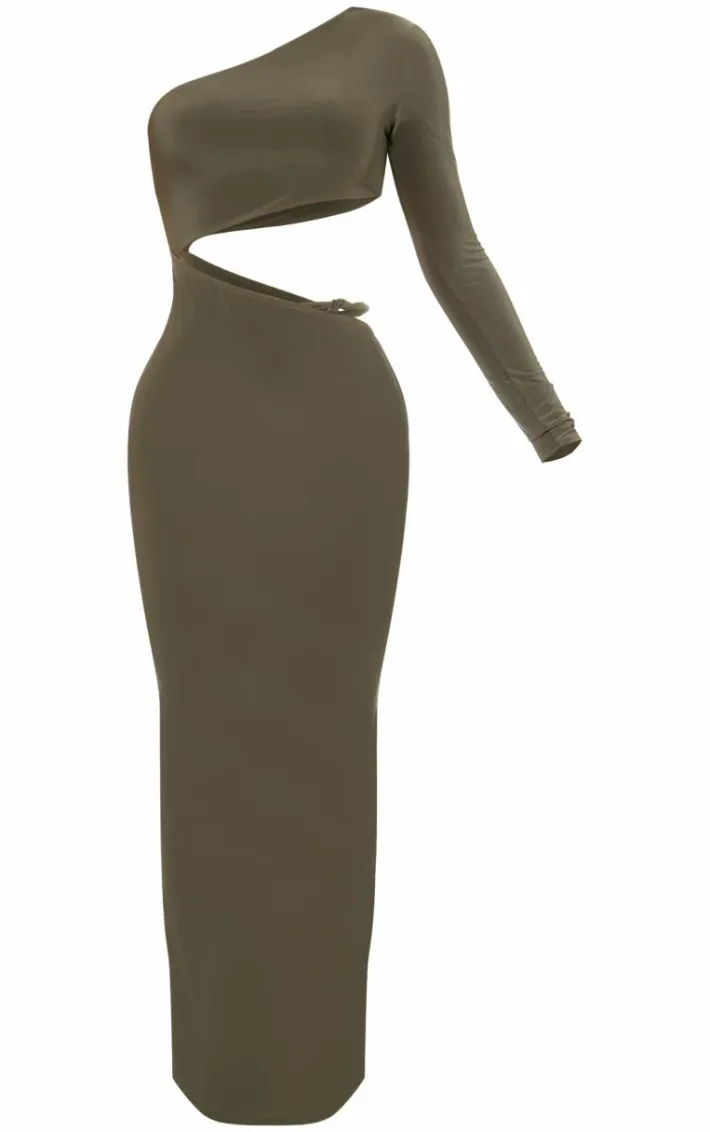 For a chic finish, opt for this olive double layer soft touch one sleeve cut out dress. Brought to you in a staple olive shade, with a double layer soft touch material for extra comfort and a one sleeve cut out design. Style with some nude heels and gold accessories to complete the look and have all eyes on you.
