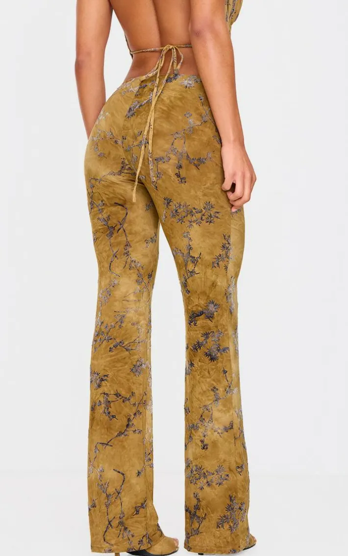 It’s official, we’re obsessed with these olive floral print devore slim flare pants. Brought to you in an olive hue devore material with a floral print design and slim flare fit, these pants are calling your name. Team with the matching top, heels and gold accessories for a combo we’re crushing on this season.