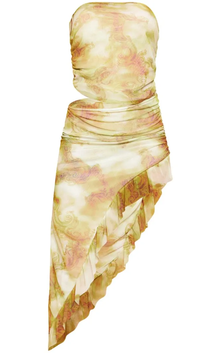 You are guaranteed to steal all the stares in this olive printed mesh cut out frill hem midi dress. Brought to you in an olive hue mesh material with a printed design, cut out detailing and a frilled hem, how can you not fall in love? Style this midi dress with heels and a clutch bag for a look that is perfect for your next occasion.