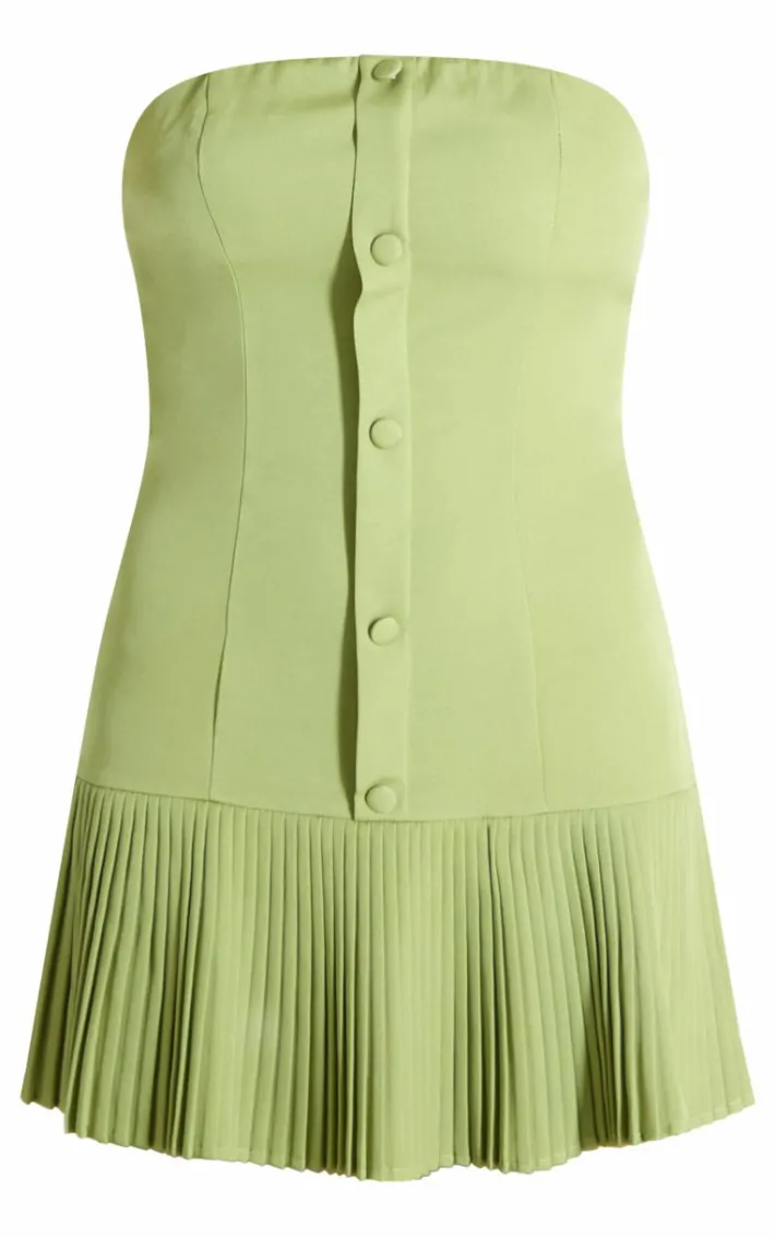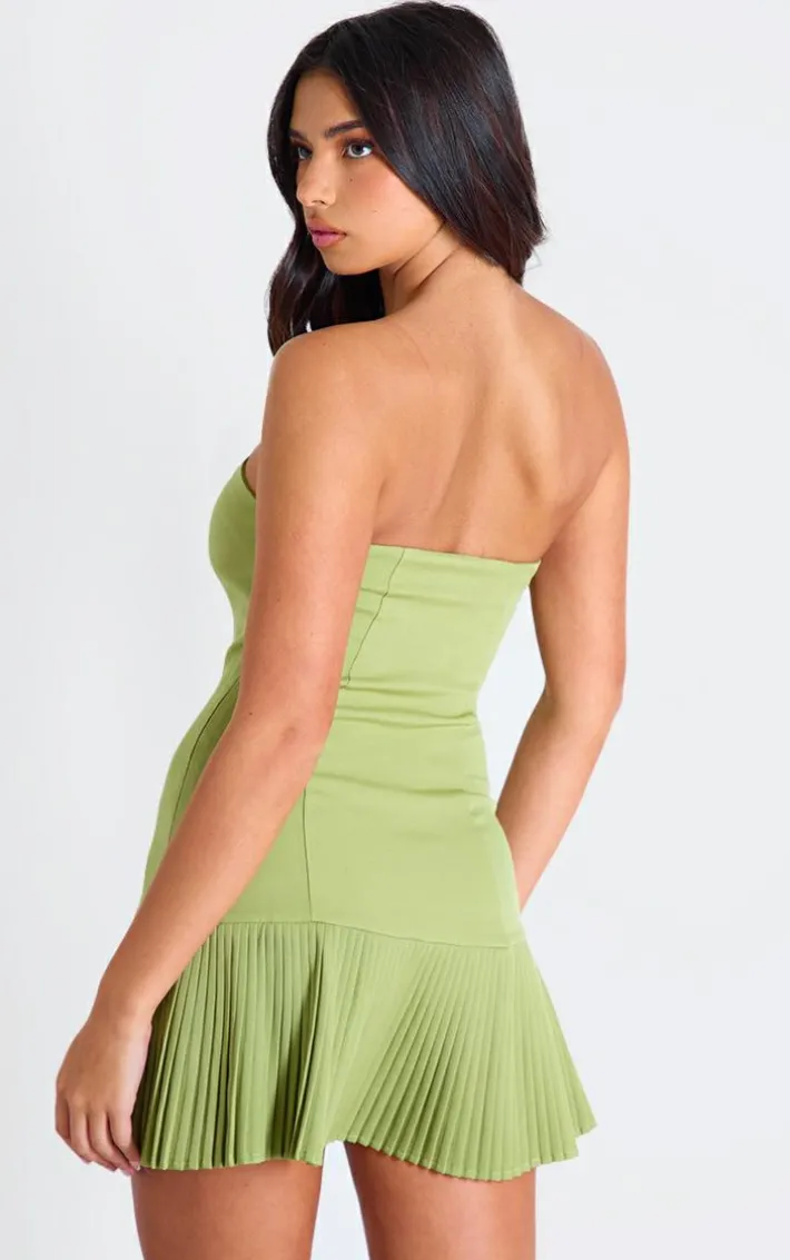 It’s official, we’re obsessed with this olive satin bandeau pleated shift dress. Brought to you in an olive hue satin material with a bandeau neckline and pleated skirt design, this shift dress is calling your name. Style with bow detail heels and a black mini bag for a chic finish we can’t take our eyes off. How can you resist?.