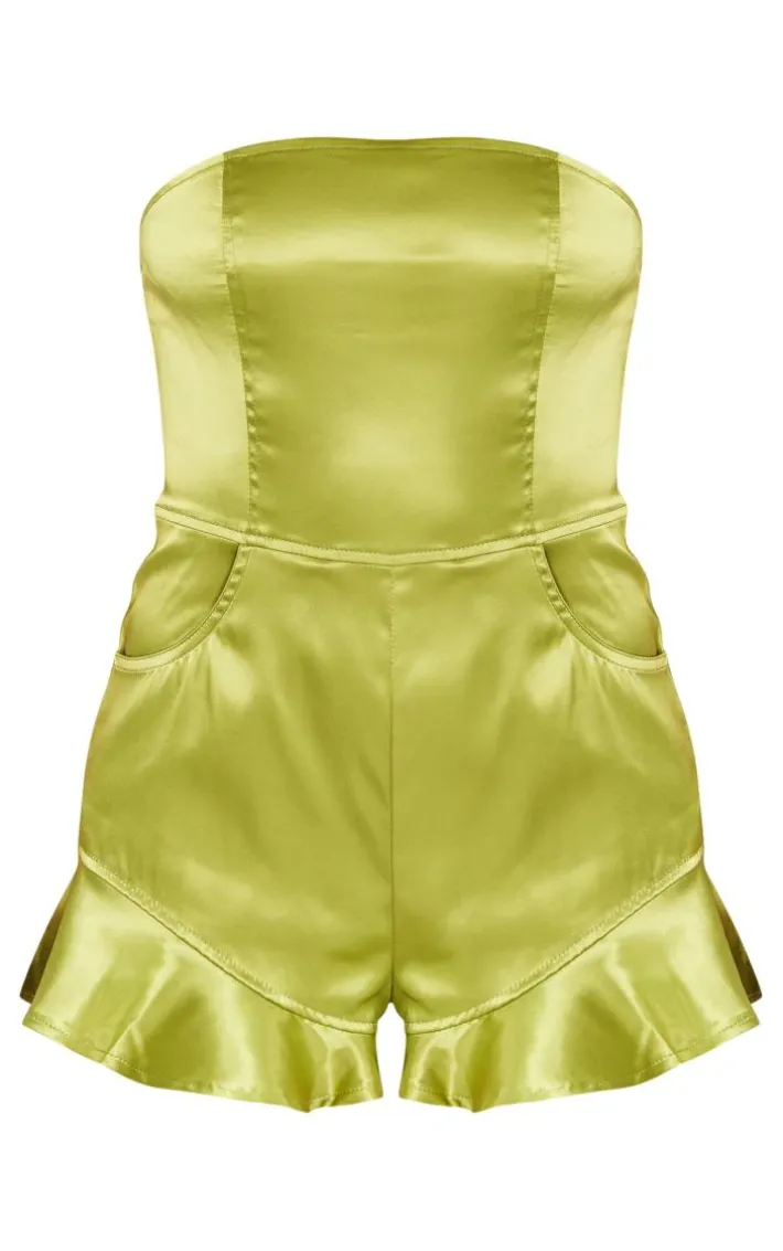 You are guaranteed to steal all the stares in this olive satin frill leg bandeau romper. This satin romper is brought to you in an olive hue satin material that is sure to bring all the luxe feels. With frill leg detailing and a bandeau neckline, you really can’t go wrong. Styling this bandeau romper with clear strap heels and statement gold accessories for a flawless finishing touch.