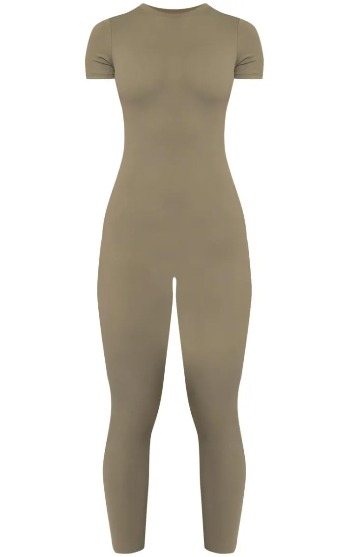 Look all kinds of chic in this olive sculpt short sleeved unitard. Brought to you in an olive hue sculpt material with a short sleeved design, this unitard is a must have. How can you resist? Style with a pair of sneakers and simple accessories for an elevated work out ready look. It’s a yes from us.
