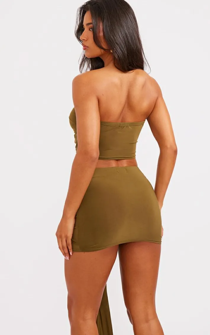Get ready to have all eyes on you with this olive slinky cut out detail bandeau top. Brought to you in an olive slinky material with a cut out detail, what’snot to love? With it’s bandeau fit, you’ll sure to earn all the likes with this dreamy piece. Finish off the look by pairing this unreal top with your fave accessories. It’s a yes from us.