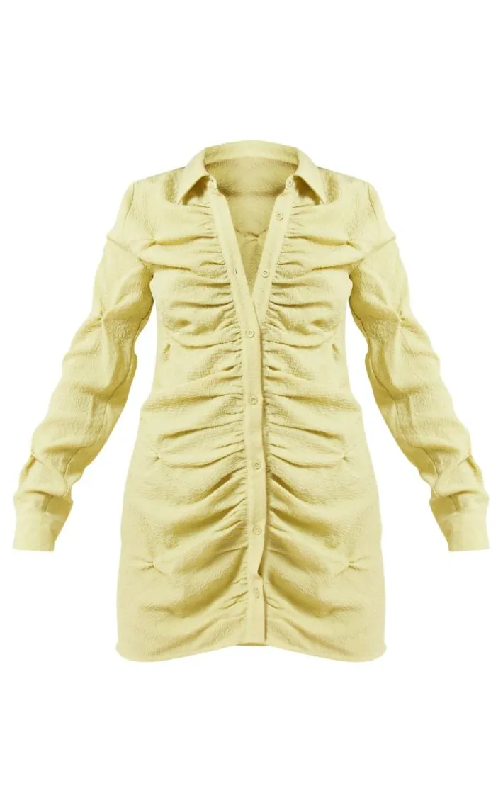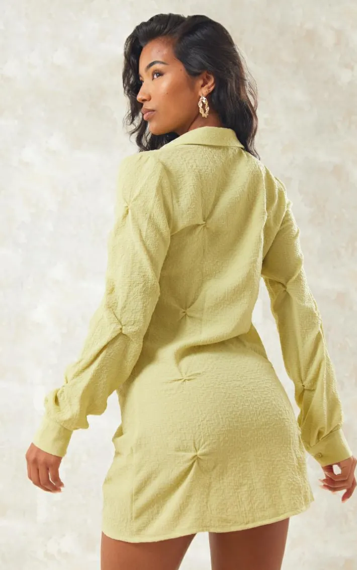 Add some bright hues to your new season wardrobe with this olive textured button up ruched shirt dress, it is sure to be the answer to all your ‘what to wear’ dilemmas. This shirt dress features an olive hue textured material with a button up design and ruched detailing, it’s a definite yes from us. Pair this shirt dress with tie up heels, a shoulder bag and gold hoop earrings for a glam look that will earn you all the compliments.