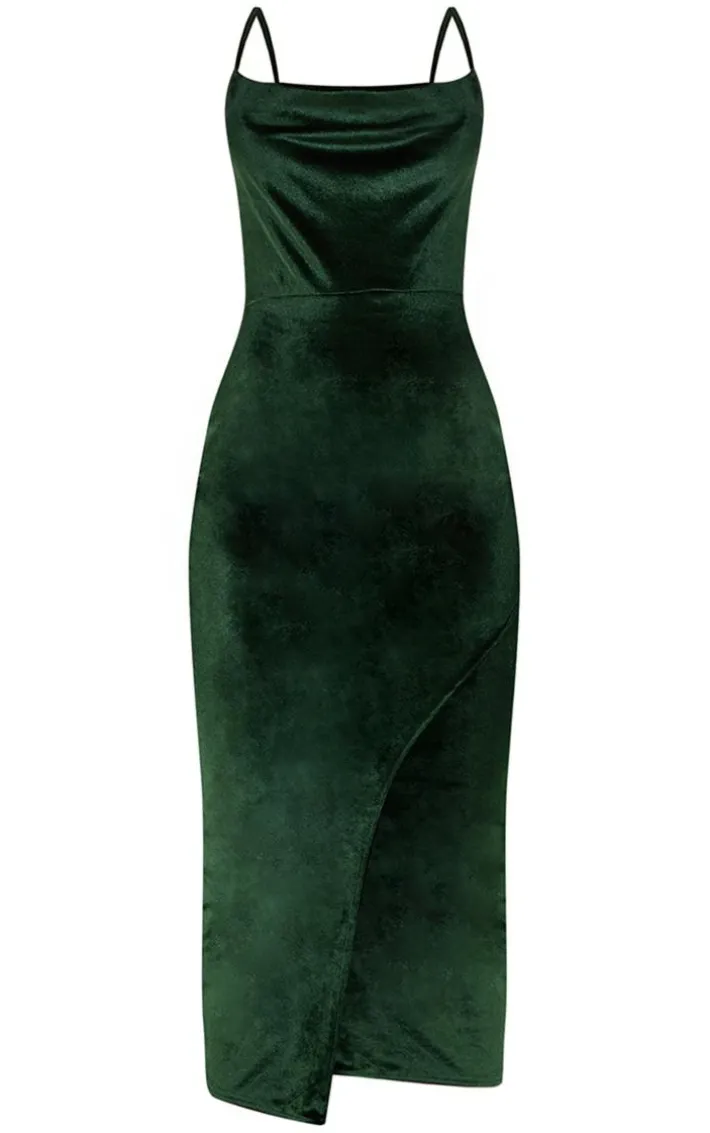Make a statement this season with this dress. Featuring an olive velvet material with a cross-back design and a midi length. Style this with your fave heels and minimal accessories to make heads turn at your next event.