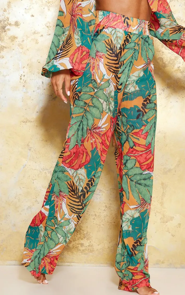 Take your look to the next level with these essential beach pants. Featuring an orange big leaf print with a wide leg fit, style with the matching bikini for a look we are loving.