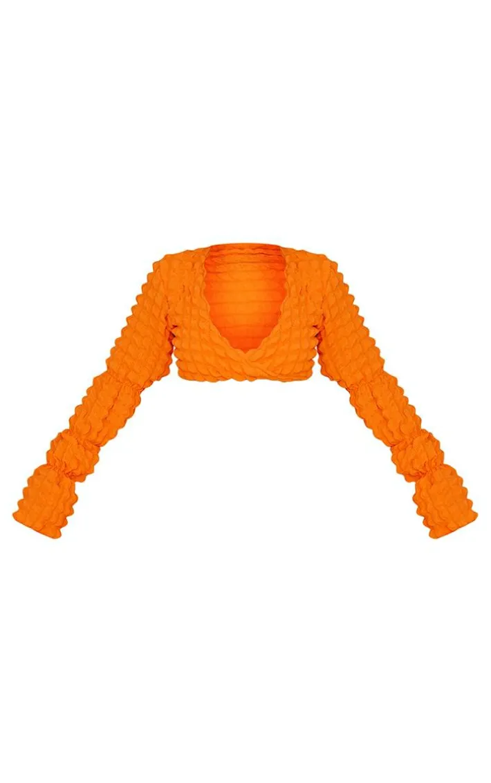 Turn up the heat on your vacay wardrobe with this top. Featuring an orange bubble textured material with long sleeves and a flattering fit, we are obsessed. Just add the matching skirt, your fave bikini and sandals to have all eyes on you.