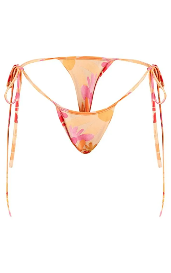Inject some dreamy floral prints into your poolside look with these orange daisy floral print tie side bikini bottoms. Brought to you in a bold orange hue material with a daisy floral print that we just can’t get enough of and tie side fastenings, how can you not fall in love? Pair these bikini bottoms with the matching bikini top and some statement gold accessories for a look that is sure to steal all the poolside stares.
