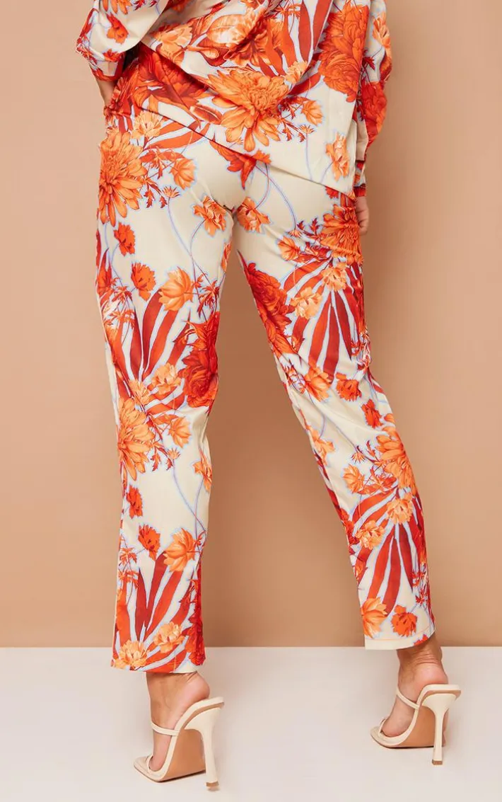 Bold prints are a must-have this season and we are loving this one. Featuring an orange floral print material with an elasticated waistband and pockets. Wear with the matching top and strappy heels for a look that is sure to get you noticed.