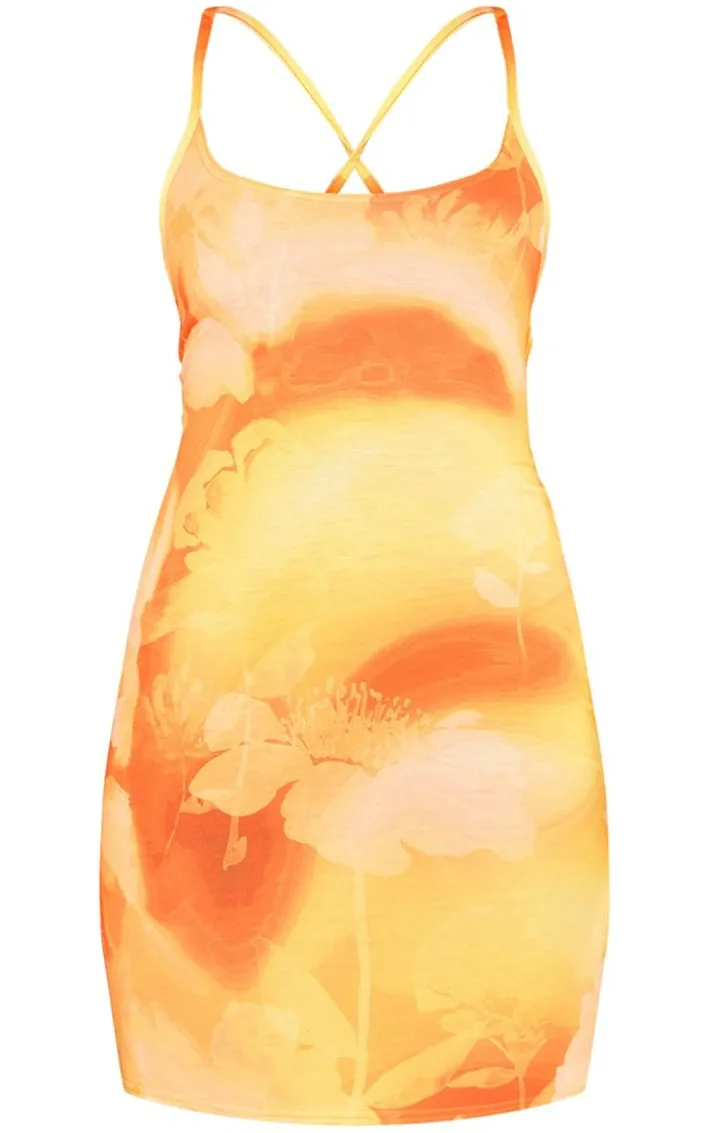 Add a pop of orange into your new season wardrobe with this orange floral strappy back bodycon dress. This bodycon dress is brought to you in an orange floral material with a strappy back and a figure-hugging fit, what more could you want ? Take the look further and wear this with some white sandals and chunky gold hoops for a flawless finish.