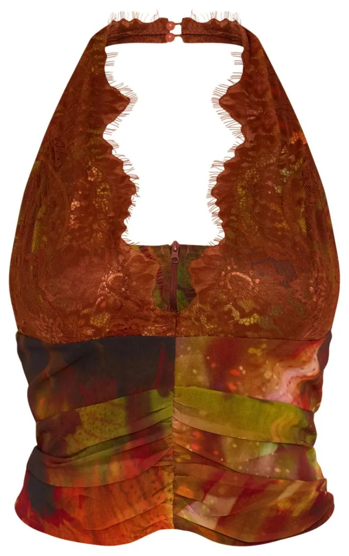 Inject some statement prints into your weekend wardrobe with this orange lace detail chiffon printed plunge long top. Brought to you in an orange hue printed chiffon material with lace detailing, a plunging neckline and a longline fit, what more could you want? Style this chiffon top with a mini skirt, tie up heels and gold accessories for a look that won’t go unnoticed.