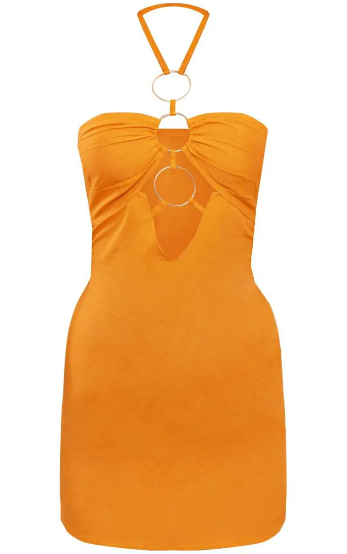 Found some last-minute weekend plans and need an unreal ‘fit? Then we have you covered with this styling staple, an orange linen look multi ring detail halter bodycon dress. This bodycon dress is brought to you in an orange linen look material with a multi ring front, a halterneck style and a figure-hugging fit, what’s not to love? Work your styling techniques and add gold high heels and accessories for a weekend-worthy finish that will gain all the likes.