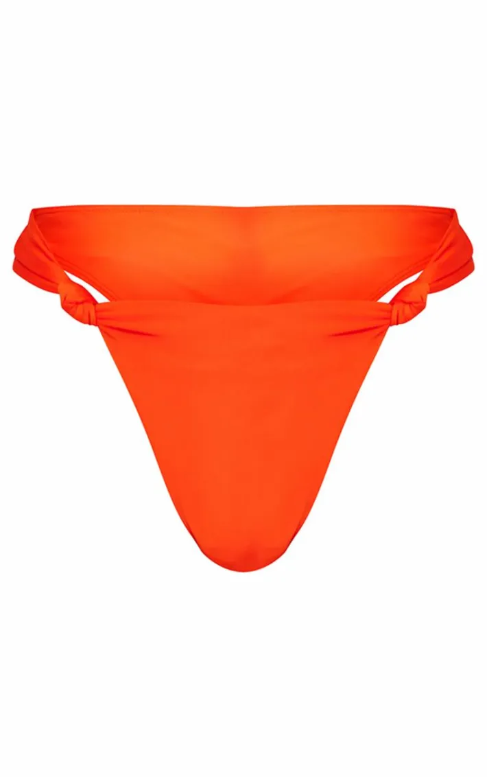Get your glow on this season in these orange ruched knot bikini bottoms. Brought to you in an orange hue swim material with a ruched design and knot detail, how can you resist? Style with the matching top and gold accessories for a sun-kissed look everyone will be asking about.