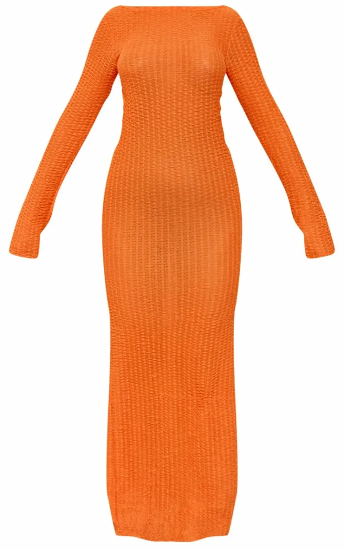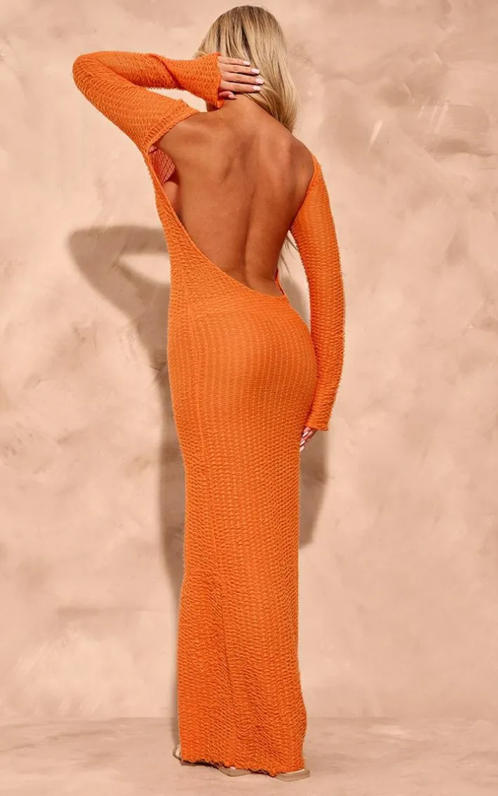 Found some last-minute weekend plans ? Then you need to add this orange textured crochet backless maxi beach dress to your basket. Made from an orange textured material with a backless design and a maxi length, how could you say no? Be prepared to turn heads for all the right reasons in this beach dress. Simply add clear heels and gold accessories for a flawless finish.