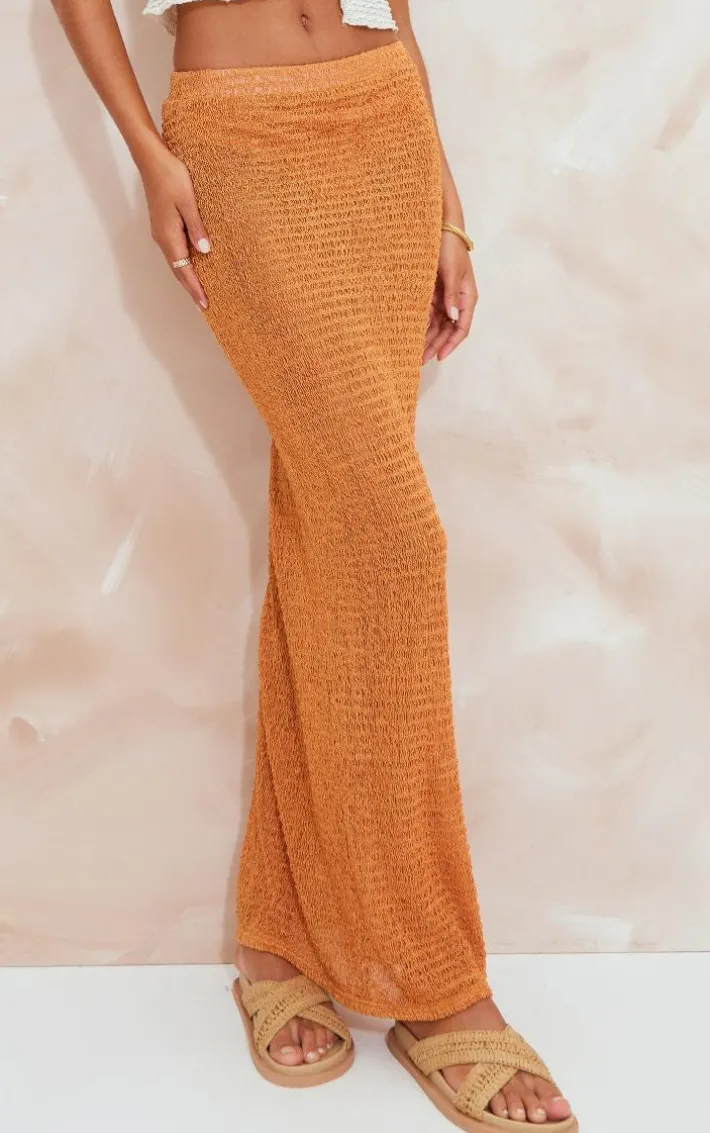 Your new season wardrobe wouldn’t be complete without this orange textured sheer midaxi skirt, it is everything we are loving for taking your look effortlessly from day to night. Made with an orange textured sheer material with a midaxi length and a figure-worshipping fit. Wear this midaxi skirt with a basic top, sandals and simple accessories for a flawless finish.