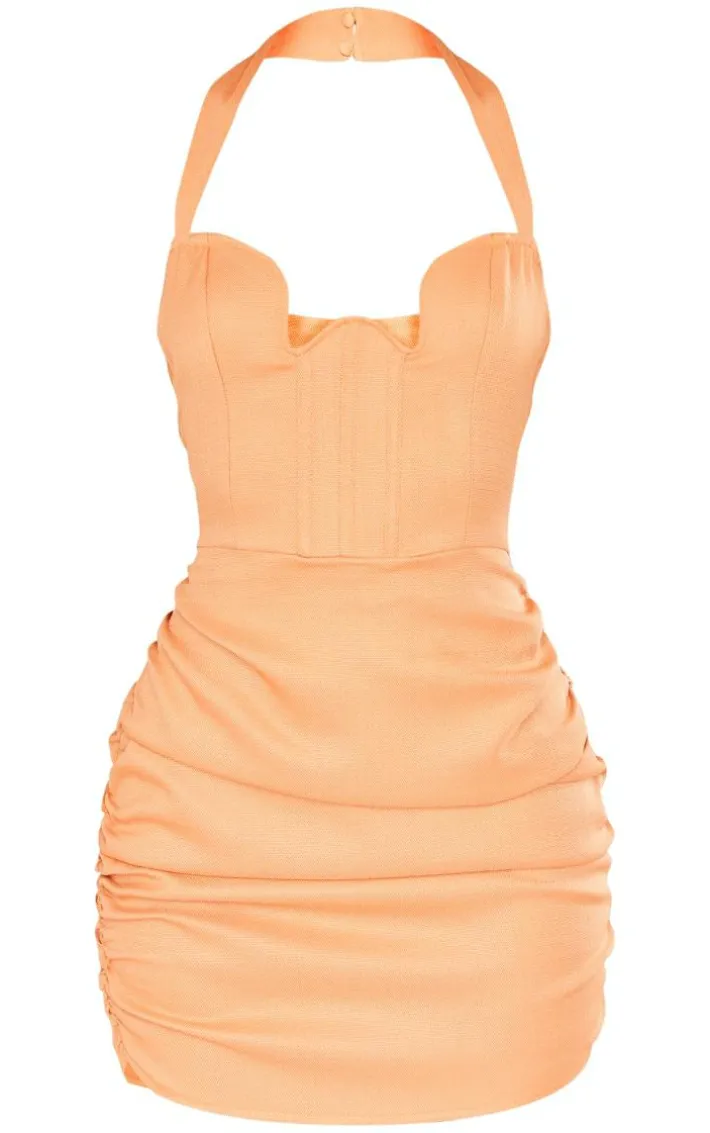 Get ready to make a statement with this orange textured woven extreme v bar halter bodycon dress. This dress is brought to you in an orange woven textured material with an extreme V bar design and a figure-hugging fit, what’s more could you want? With it’s statement orange hue you’re sure to have all eyes on you. Pair with your dreamy high heels, accessoris and mini bag for a next-level look.