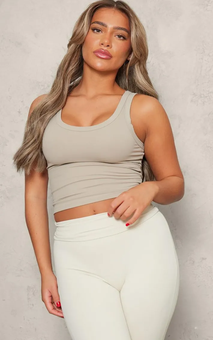 Amp up your workout wardorbe with this pale khaki snatched sculpt scoop Vest. Brought to you in a pale khaki snatched sculpt material with a scoop neck design, what more could you need? Whether your going to the gym or looking for a fierce off-duty ‘fit, this snatched sculpt Vest is perfect. Style with some flared bottoms, sneakers and simple accessories for a fool-proof finish.