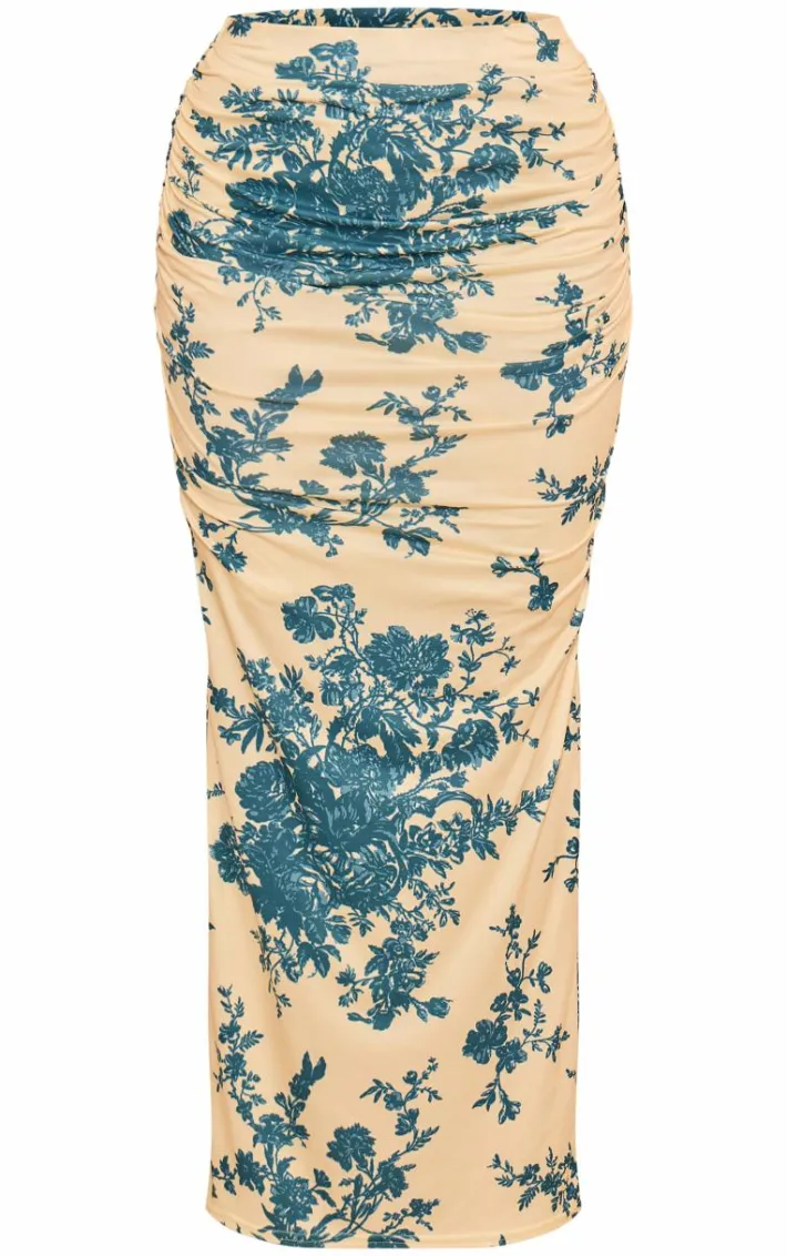 Tap into you feminine side with this pale yellow floral print soft touch ruched back maxi skirt. Brought to you in a pale yellow soft touch material with a floral print design, what’s not to love? Its ruched back and maxi length is sure to have you standing out from the rest. Team with the matching top and your go-to clear heels to finish off the look we are loving.