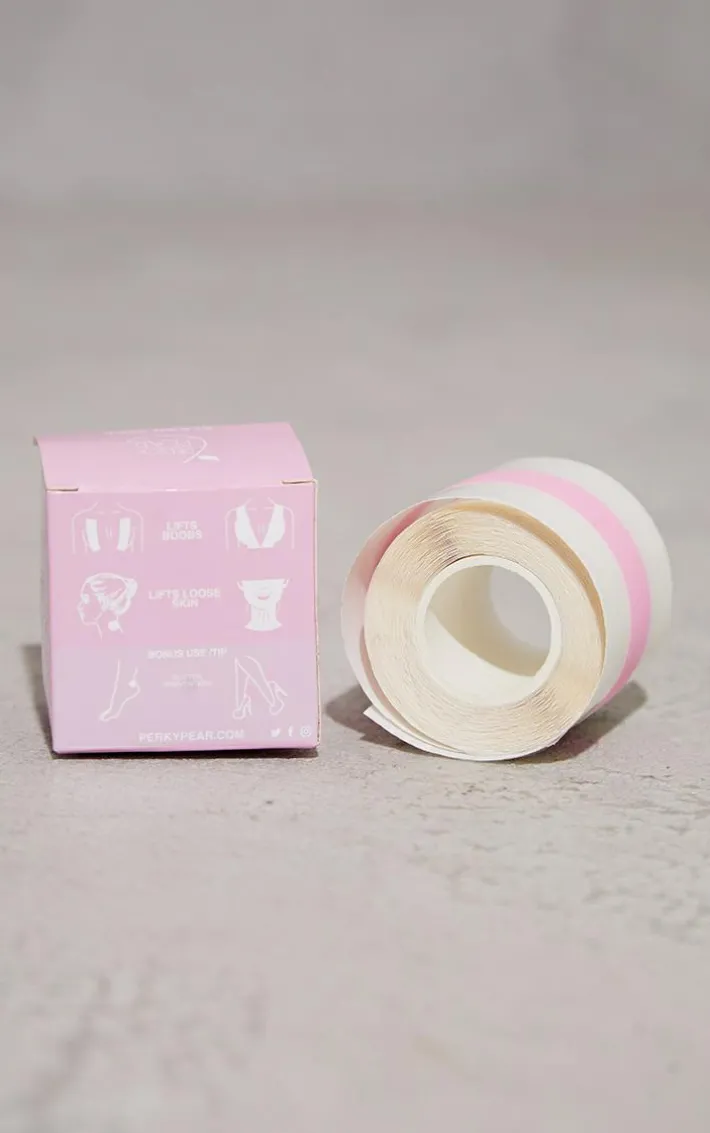 Perky Pear’s clear tape is stretchy like their cotton tape so it doesn’t ping off and is super mouldable to your shape like their cotton stretchy tape but they wanted it to be clear! So they created a tape that was stretchy, durable, sweat proof and clear but due to its super thin and mouldable material you remove the clear coating after applying watch Perky Pear’s application video in the information below.