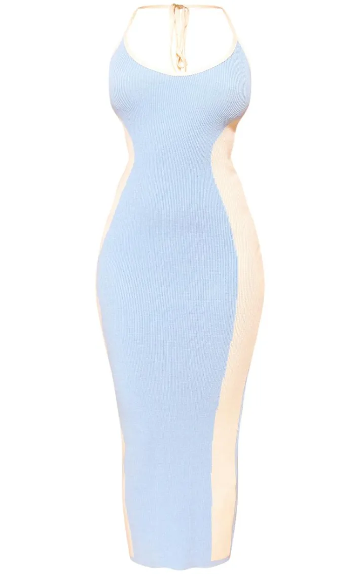 Get ready to have all eyes on you with this petite baby blue knit halterneck contrast midaxi dress. Brought to you in a baby blue knit material with a halterneck design and a contrasting style, what’snot to love? With It’s midaxi length you’ll sure to earn all the likes with this dreamy piece. Finish off the look by pairing this with chunky sandals and gold accessories. It’s a yes from us.