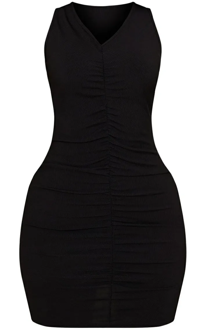 This petite black ribbed ruched racer bodycon dress is perfect for your weekend plans. Brought to you in a black ribbed material with a racer neckline and ruched detailing, what’s not to love? Wear this bodycon dress with a bright blazer and strappy heels for a simple yet chic look that is sure to have eyes on you no matter what your plans.