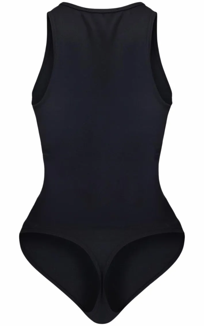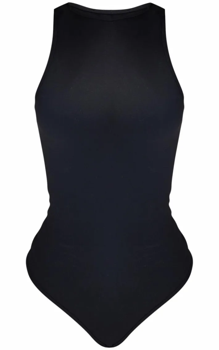 Elevate your new season wardrobe essentials with this petite black snatched sculpt racer bodysuit. Made using a black material with a racer style and a figure-flattering fit, this petite bodysuit is perfect for layering with any look. Just add the matching shorts, sneakers and your fave accessories for an instant chic finish.