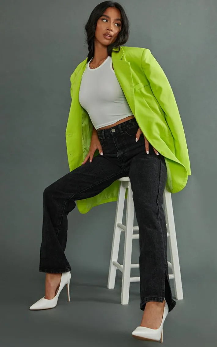 Give your look an instant edge with these split hem jeans. Featuring a black wash denim material with split hems and a straight leg fit, team them with a black crop top, an oversized blazer and heels for a killer weekend combo.