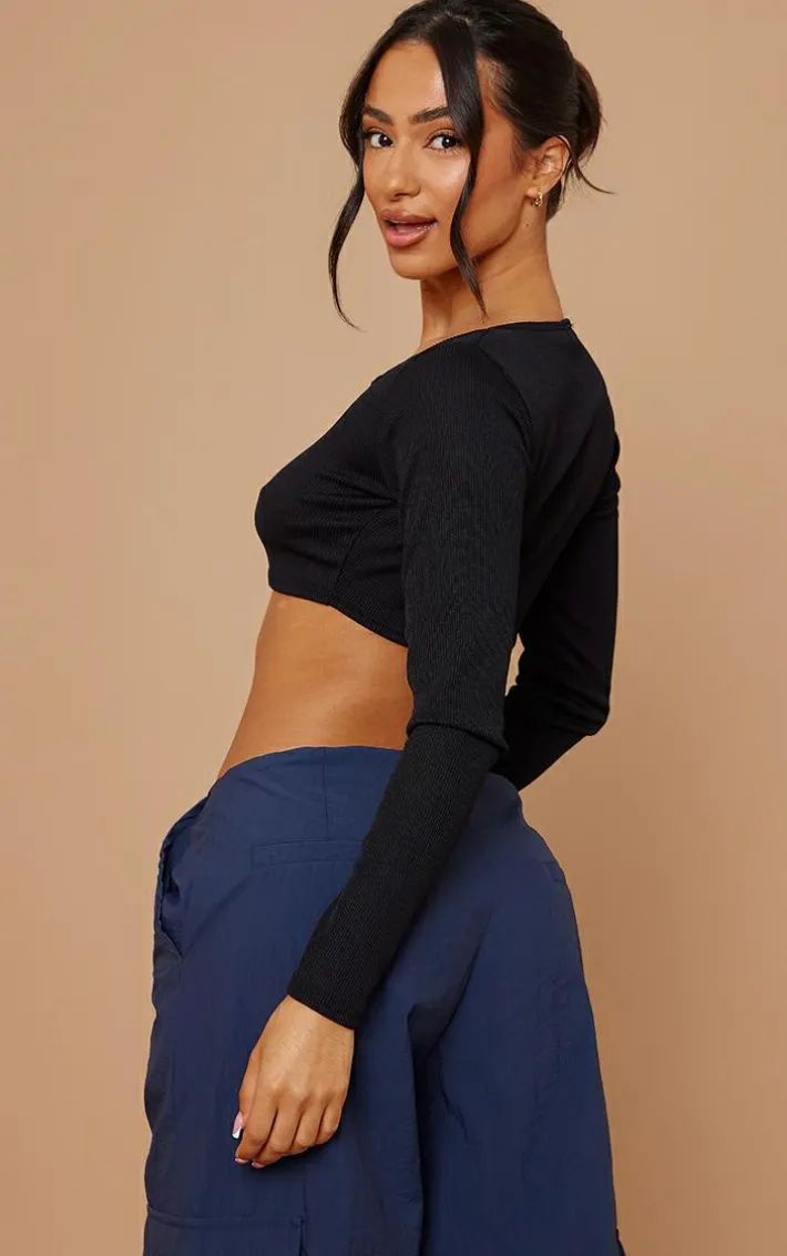 Give your wardrobe a seriously chic update with this killer crop top. Featuring a ribbed fabric with a square neckline, long sleeves and a cropped length, we are obsessed. Team with sweatpants and clear heels for a look we’re loving.